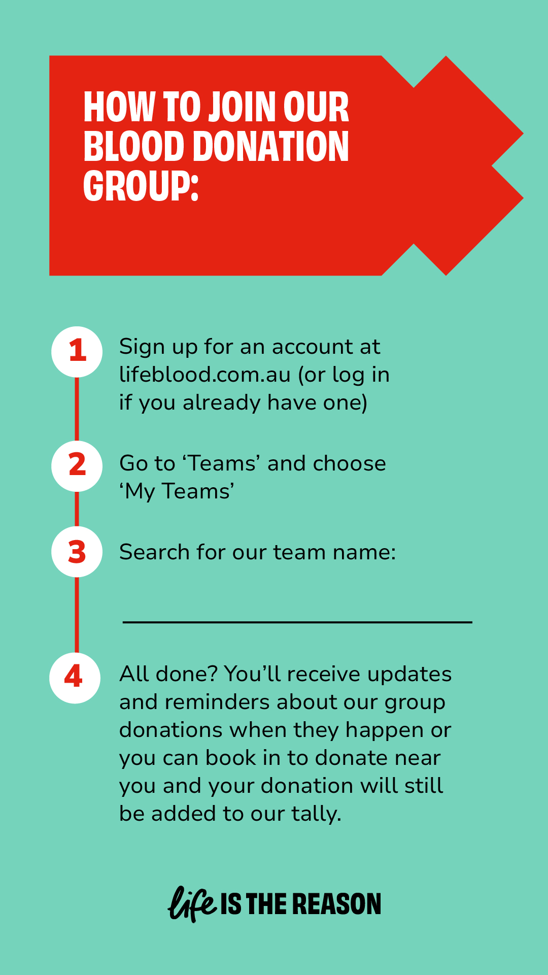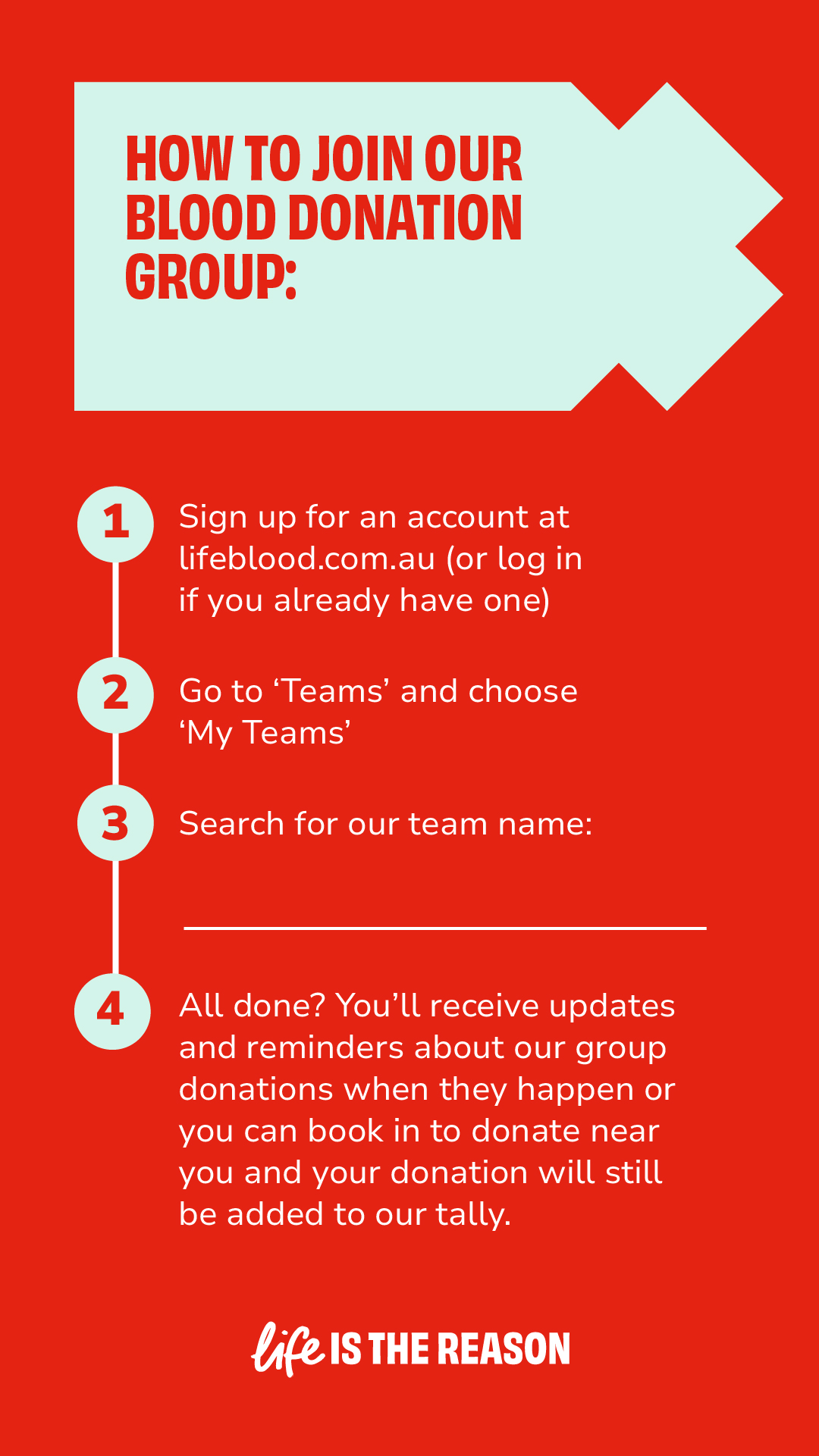 When you start a team, you become a Lifeblood Champion. This doesn’t mean you have to be an expert at all things blood donation – we’re here to help. We’ve created a suite of downloadable resources below – from social tiles with ready-to-go captions, email and Whatsapp copy to editable Instagram stories – it’s all here and it’s all yours.