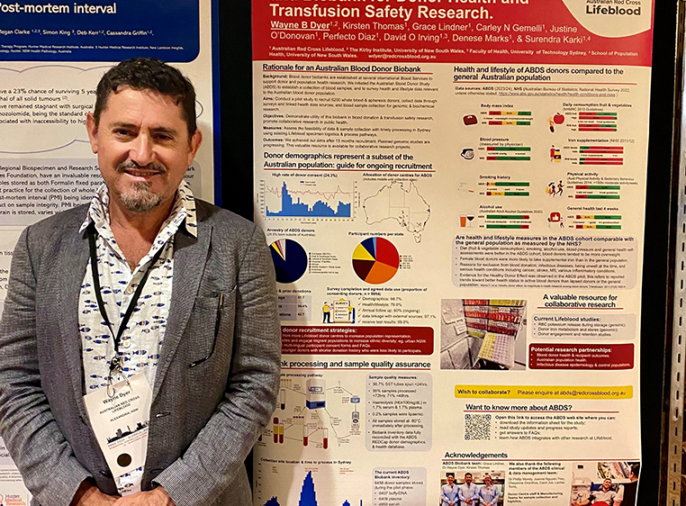 Wayne also presented about the ABDS Biobank at the Blood 2024 conference by Australian and New Zealand Society for Blood Transfusion in Brisbane (see photo). He was awarded the prize of Best Poster along with two others.